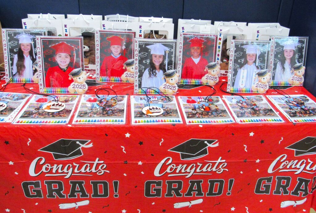 Each child received a gift bag of items, such as a plush bear with a mortarboard and diploma, to remind them of the school’s mascot, a Class of 2025 framed photo of the child in their cap and gown, and a yearbook filled with happy memories from the entire year. Gifts also included an American Doll for the girls and Lego sets for the boys, donated to the school by Santa Claus Inc.