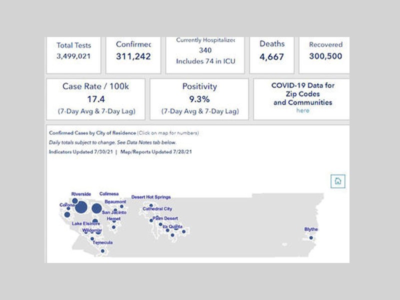 · Desert Hot Springs Confirmed Cases: 4,345 Deaths: 74 Recovered: 4,221