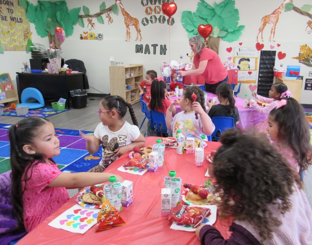 Instructional Aide Amanda Juarez gets pre-kindergarten students involved with their Friendship Party treats on Feb. 13.