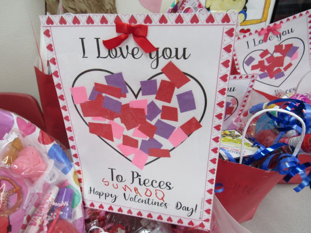 Pre-K students took home Valentine’s Day grams from classmates and crafts they made for their families, like this laminated sign.